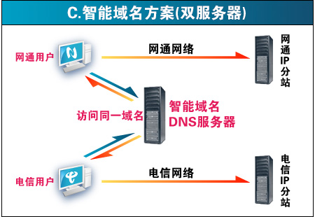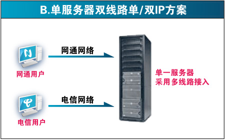 目前,虚拟主机行业中涌现出几家服务机构推出各种南北互联互通的虚拟主机服务,他们的解决大体分为四种,详见:双线路能打通南北网络瓶颈吗? (来源:世界网络) 第一种:双服务器双机房方案 第三种:智能域名方案(双服务器) 缺点:跟第一种方案一样,出多一倍的费用,并且"智能"解析域名在国内还不成熟,经常发生电信的用户访问时解析到网通ip的情况(因为ip数据库不准确)。 第四种:CDN解决方案 通过相关程序自动抓取用户源服务器的数据,然后缓存在不同网段节点的服务器上。 长株潭分销平台(新科数码)采用的双线数据机房为单服务器单ip双线接入方案,电信网通各15G出口,同时到铁通、联通、移动也有高速的路由。彻底解决了南北互联互通的问题,并且价格上也较其他双线方案便宜。比如,一个空间200元,用第一、三种方案需要200*2=400元,用第四种方案,需要再购买一个cdn,一共是200+300=500元。而采用第二种方案,我司的价格仅为300元,不但效果最好,而且成本最低。所以长株潭分销平台(新科数码)提供的双线路虚拟主机是目前国内性价比最高的双线主机!